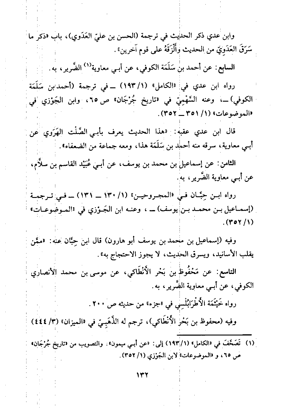 قال ابن عدي عقبه: "هذا الحديث يعرف بأبي الصَّلْت الهَرَوي عن أبي معاوية، سرقه منه أحمد بن سَلَمَة هذا، ومعه جماعة من الضعفاء".