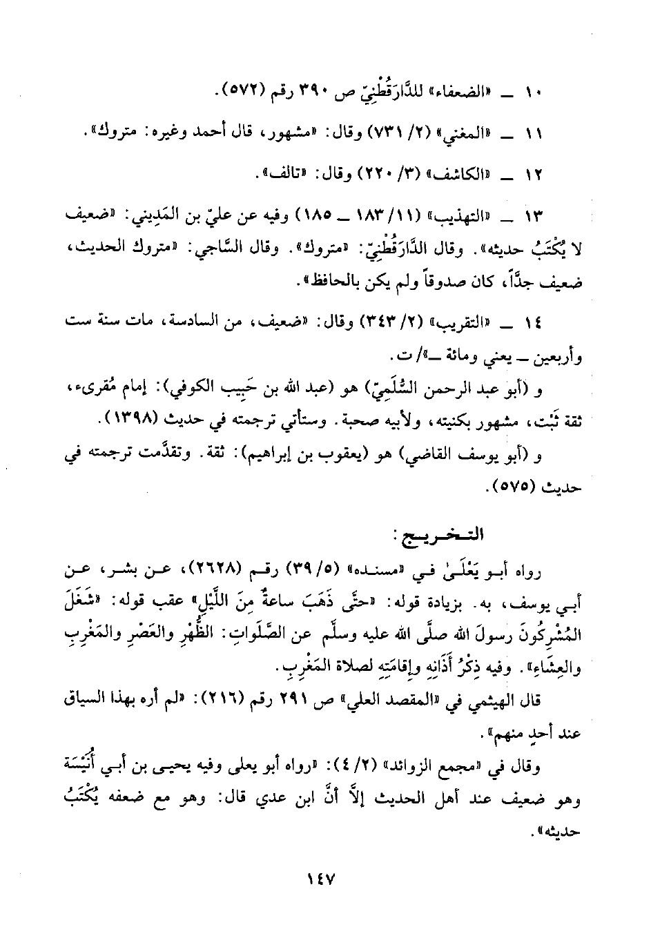 ١٠ - "الضعفاء" للدَّارَقُطْنِيّ ص ٣٩٠ رقم (٥٧٢).