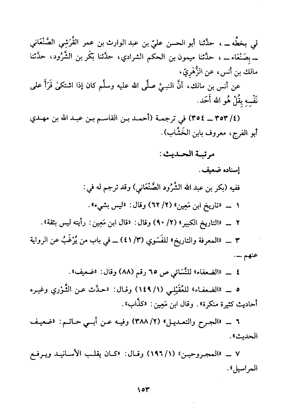 لي بخطِّه-، حدَّثنا أبو الحسن عليّ بن عبد الوارث بن عمر القُرَشِي الصَّنْعَاني -بِصَنْعَاء-، حدَّثنا ميمون بن الحكم الشرادي، حدَّثنا بَكْر بن الشَّرُود، حدَّثنا مالك بن أنس، عن الزُّهْرِيّ،