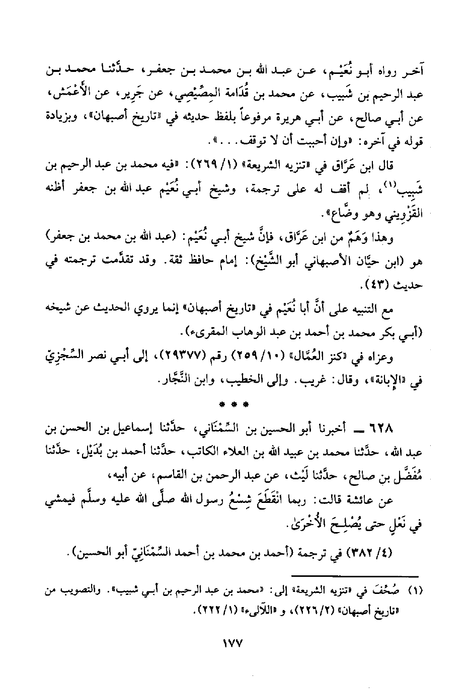 (¬١) صُحِّفَ في "تنزيه الشريعة" إلى: "محمد بن عبد الرحيم بن أبي شبيب". والتصويب من "تاريخ أصبهان" (٢/ ٢٢٦)، و"اللآلئ" (١/ ٢٢٢).