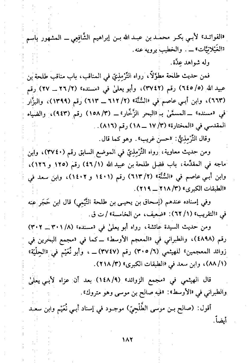 فمن حديث طلحة مطوَّلًا، رواه التِّرْمِذِيّ في المناقب، باب مناقب طلحة بن عبيد اللَّه (٥/ ١٤٥) رقم (٣٧٤٢)، وأبو يعلى في "مسنده" (٢/ ٢٦ - ٢٧) رقم (٦٦٣)، وابن أبي عاصم في "السُّنَّة" (٢/ ٦١٢ - ٦١٣) رقم (١٣٩٩)، والبزَّار في "مسنده" -المسمَّى بـ "البحر الزَّخَّار"- (٣/ ١٥٨) رقم (٩٤٣)، والضياء المقدسي في "المختارة" (٣/ ١٧ - ١٨) رقم (٨١٦).