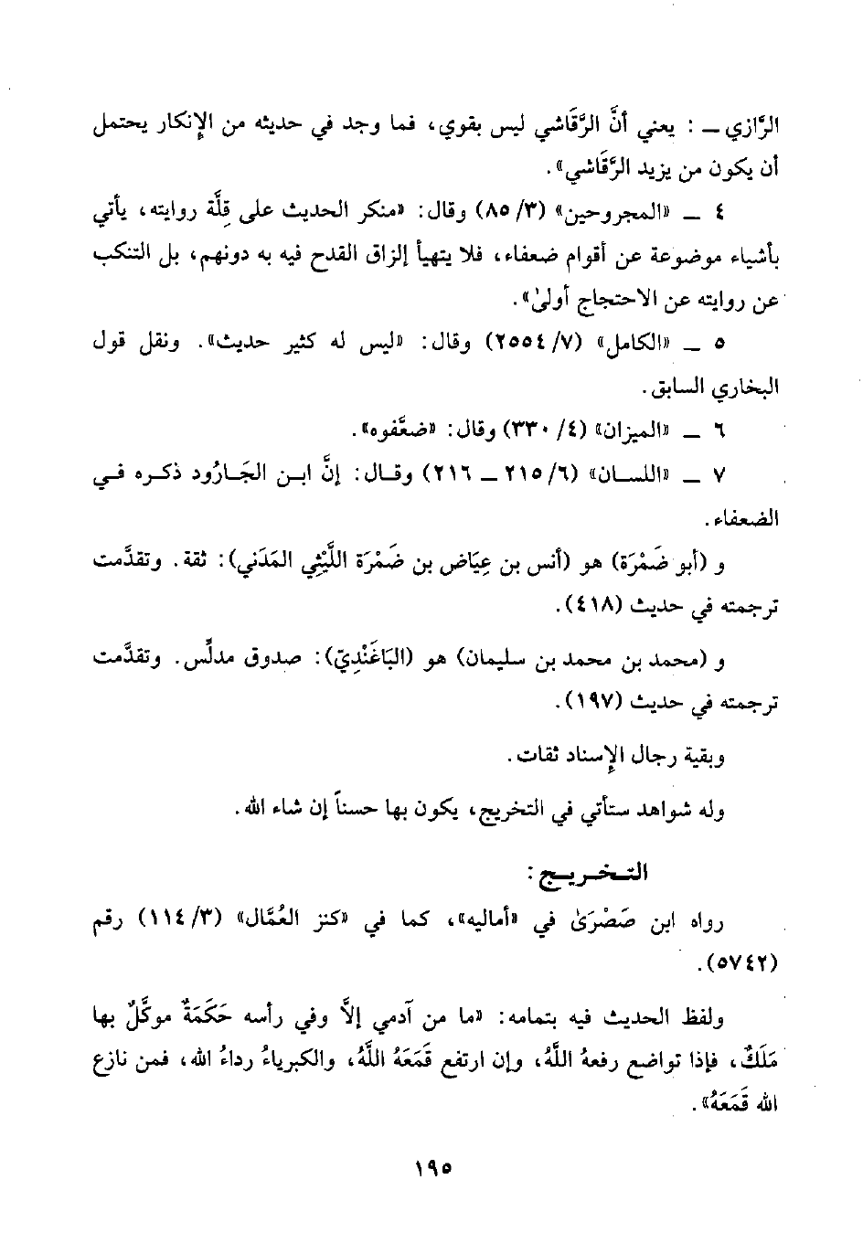 ٧ - "اللسان" (٦/ ٢١٥ - ٢١٦) وقال: إنَّ ابن الجَارُود ذكره في الضعفاء.