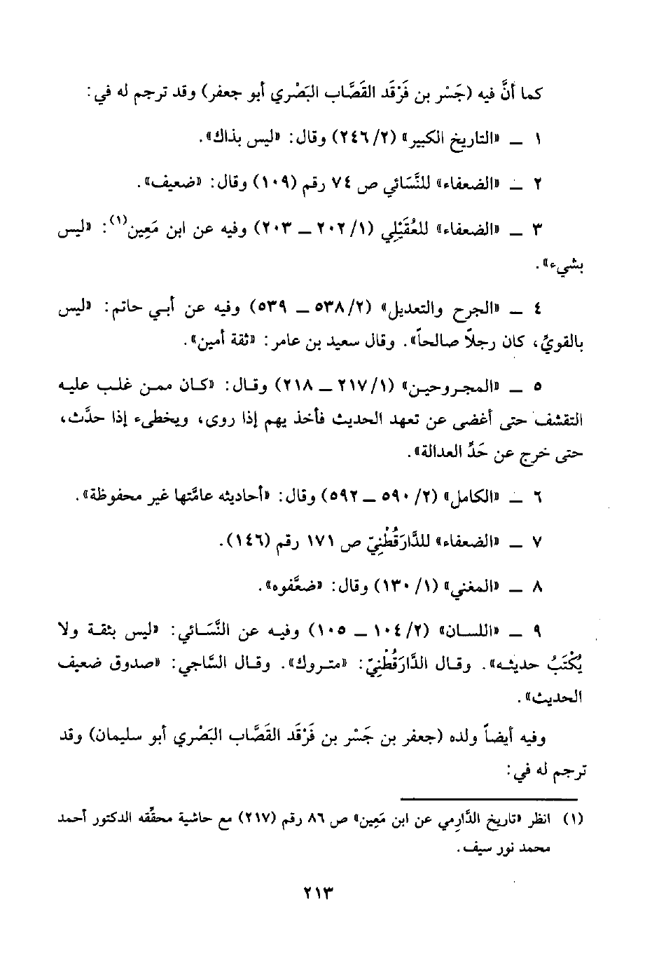 (¬١) انظر "تاريخ الدَّارِمي عن ابن مَعِين" ص ٨٦ رقم (٢١٧) مع حاشية محقِّقه الدكتور أحمد محمد نور سيف.