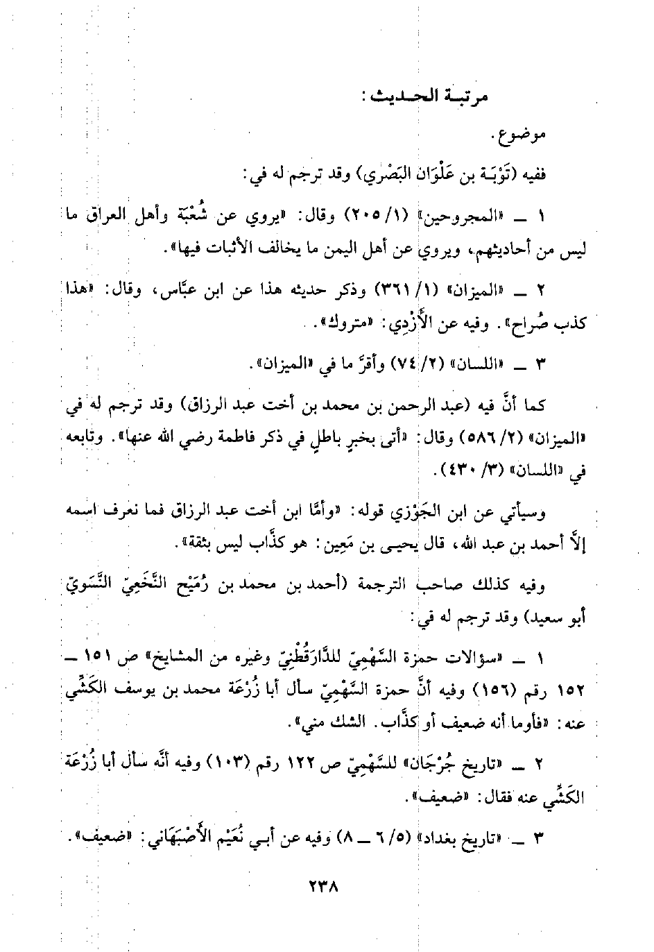 كما أنَّ فيه (عبد الرحمن بن محمد بن أخت عبد الرزاق) وقد ترجم له في "الميزان" (٢/ ٥٨٦) وقال: "أتي بخبرٍ باطلٍ في ذكر فاطمة رضي اللَّه عنها". وتابعه في "اللسان" (٣/ ٤٣٠).