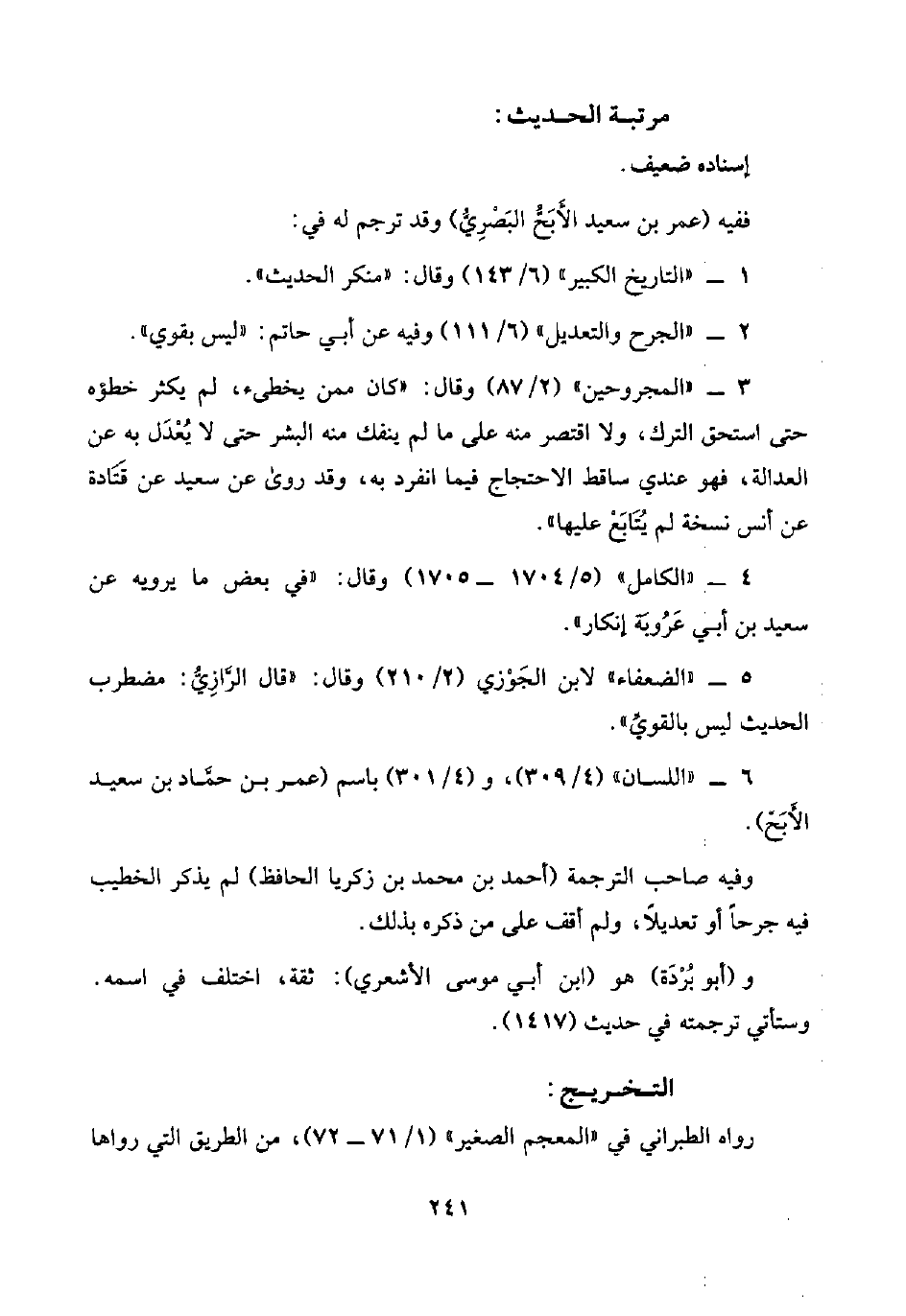 ففيه (عمر بن سعيد الأَبَحُّ البَصْرِيُّ) وقد ترجم له في: