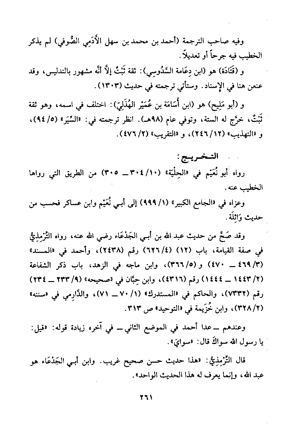 قال التِّرْمِذِيُّ: "هذا حديث حسن صحيح غريب. وابن أبي الجَدْعَاء هو عبد اللَّه، وإنما يعرف له هذا الحديث الواحد".