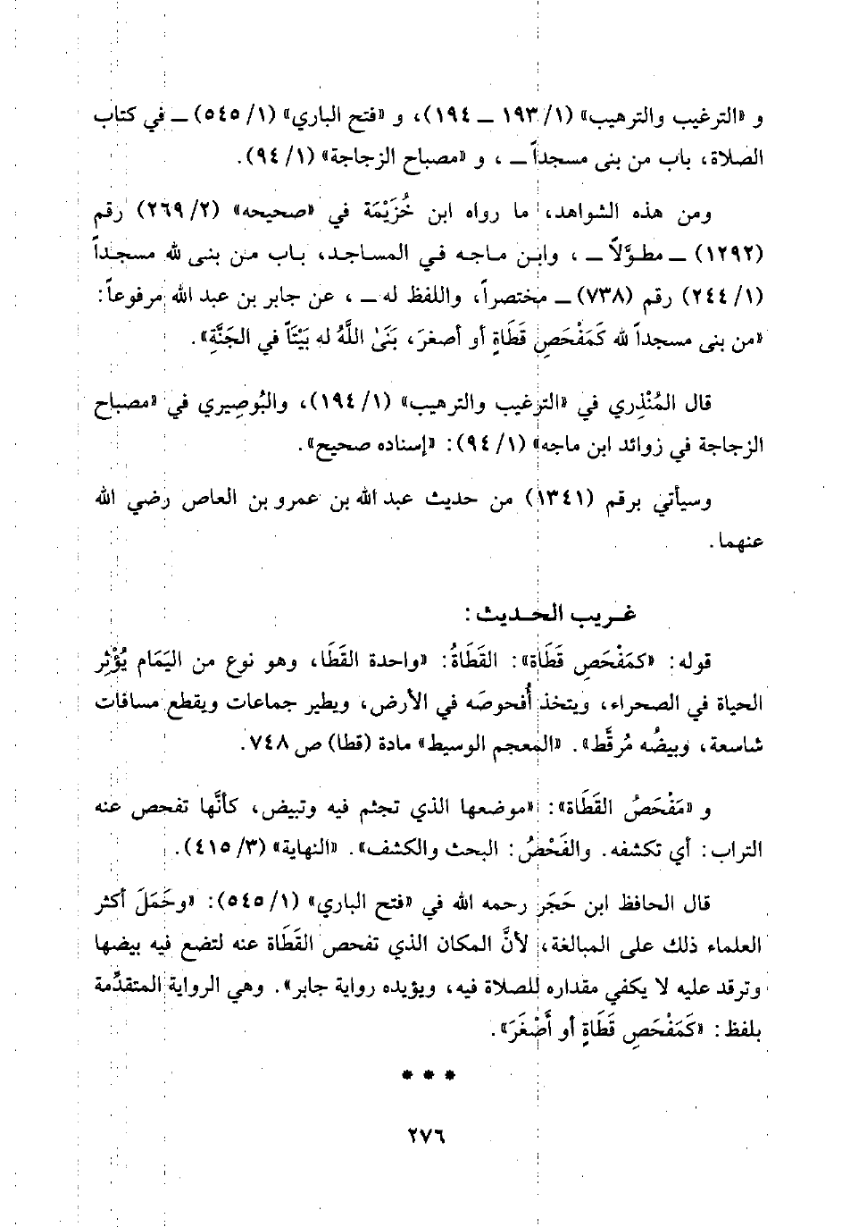 و"الترغيب والترهيب" (١/ ١٩٣ - ١٩٤)، و"فتح الباري" (١/ ٥٤٥) -في كتاب الصلاة، باب من بنى مسجدًا-، و"مصباح الزجاجة" (١/ ٩٤). .
