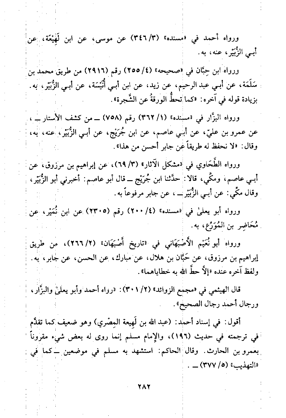 ورواه الطَّحَاوي في "مشكل الآثار" (٣/ ٦٩)، عن إبراهيم بن مرزوق، عن أبي عاصم، ومكِّي، قالا: حدَّثنا ابن جُرَيْج -قال أبو عاصم: أخبرني أبو الزُّبَيْر، وقال مكِّي: عن أبي الزُّبَيْر-، عن جابر مرفوعًا به.