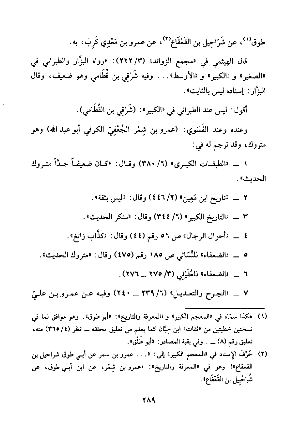 (¬٢) حُرِّفَ الإسناد في "المعجم الكبير" إلى: ". . . عمرو بن سمر عن أبي طوق شراحيل بن القعقاع"! وهو في "المعرفة والتاريخ": "عمرو بن شِمْر، عن ابن أبي طوق، عن شُرَحْبِيل بن القَعْقَاع".