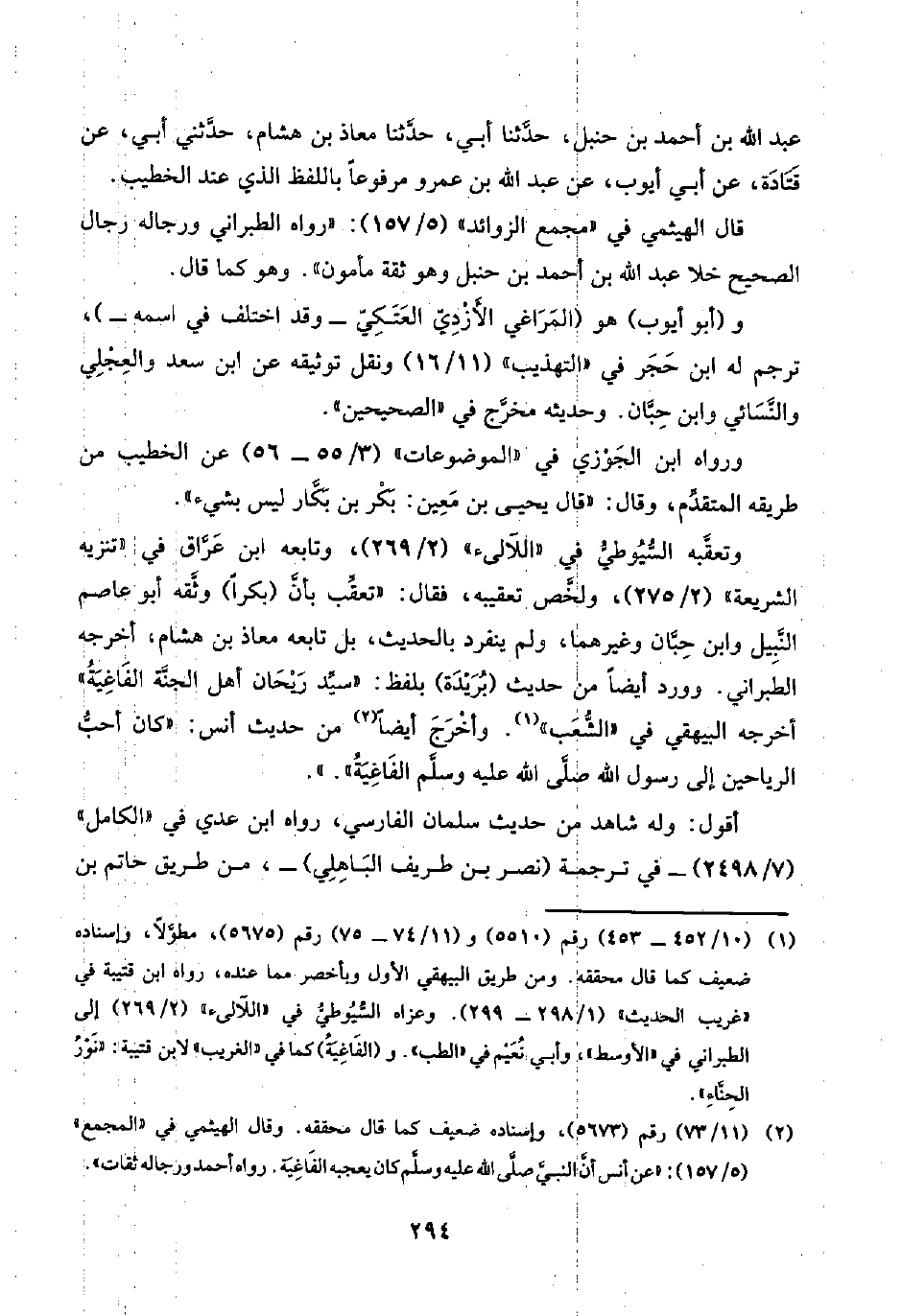 وتعقَّبه السُّيُوطِيُّ في "اللآلئ" (٢/ ٢٦٩)، وتابعه ابن عَرَّاق في "تنزيه الشريعة" (٢/ ٢٧٥)، ولخَّص تعقيبه، فقال: "تعقِّب بأنَّ (بكرًا) وثَّقه أبو عاصم النَّبِيل وابن حِبَّان وغيرهما، ولم ينفرد بالحديث، بل تابعه معاذ بن هشام، أخرجه الطبراني. وورد أيضًا من حديث (بُرَيْدة) بلفظ: "سيِّد رَيْحَان أهل الجَنَّة الفَاغِيَةُ" أخرجه البيهقي في "الشُّعَب" (¬١). وأخْرَجَ أيضًا (¬٢) من حديث أنس: "كان أحبُّ الرياحين إلى رسول اللَّه صلَّى اللَّه عليه وسلَّم الفَاغِيَةُ".".