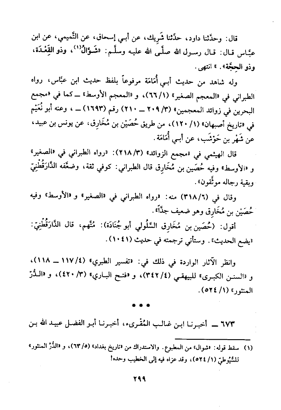قال: وحدَّثنا داود، حدَّثنا شَرِيك، عن أبي إسحاق، عن التَّميمي، عن ابن عبَّاس قال: قال رسول اللَّه صلَّى اللَّه عليه وسلَّم: "شَوَّالُ (¬١)، وذو القِعْدَة، وذو الحِجَّة"." انتهى.