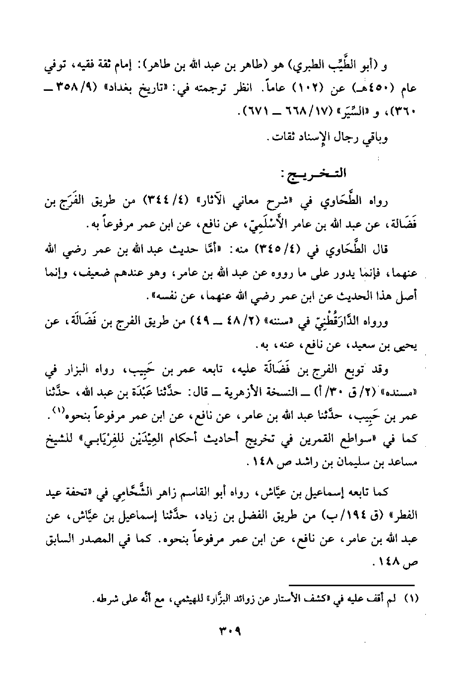 كما في "سواطع القمرين في تخريج أحاديث أحكام العِيْدَين للفِرْيَابي" للشيخ مساعد بن سليمان بن راشد ص ١٤٨.