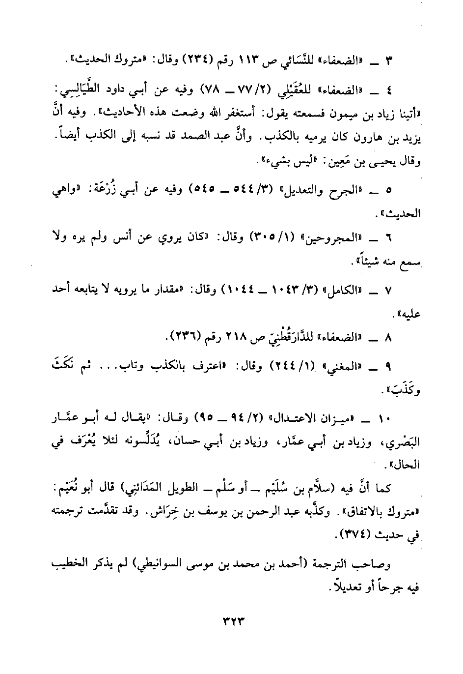 ٨ - "الضعفاء" للدَّارَقُطْنِيّ ص ٢١٨ رقم (٢٣٦).