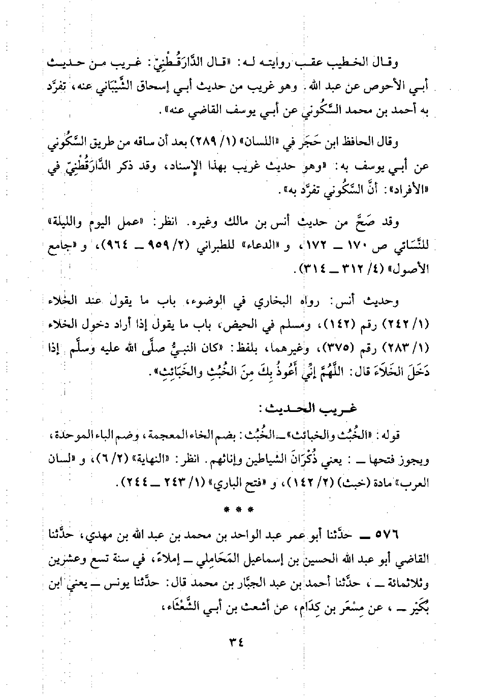 ٥٧٦ - حدَّثنا أبو عمر عبد الواحد بن محمد بن عبد اللَّه بن مهدي، حدَّثنا القاضي أبو عبد اللَّه الحسين بن إسماعيل المَحَامِلي -إملاءً، في سنة تسع وعشرين وثلاثمائة-، حدَّثنا أحمد بن عبد الجبَّار بن محمد قال: حدَّثنا يونس -يعني ابن بُكَيْر-، عن مِسْعَر بن كِدَام، عن أشعث بن أبي الشَّعْثَاء،