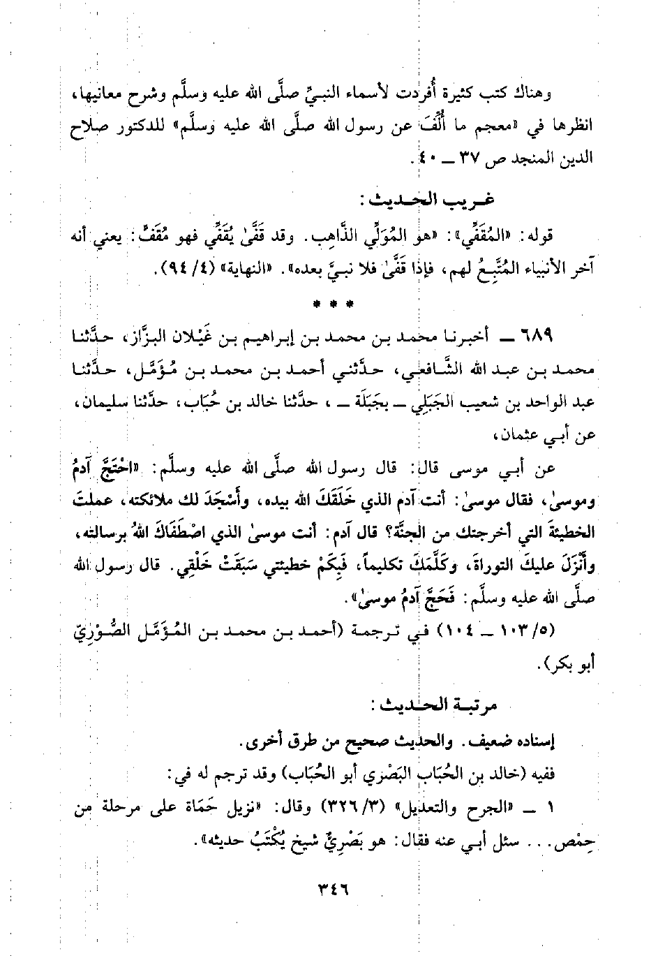 ٦٨٩ - أخبرنا محمد بن محمد بن إبراهيم بن غَيْلان البزَّاز، حدَّثنا محمد بن عبد اللَّه الشافعي، حدَّثني أحمد بن محمد بن مُؤَمَّل، حدَّثنا عبد الواحد بن شعيب الجَبَلِي -بجَبَلَة-، حدَّثنا خالد بن حُبَاب، حدَّثنا سليمان، عن أبي عثمان،
