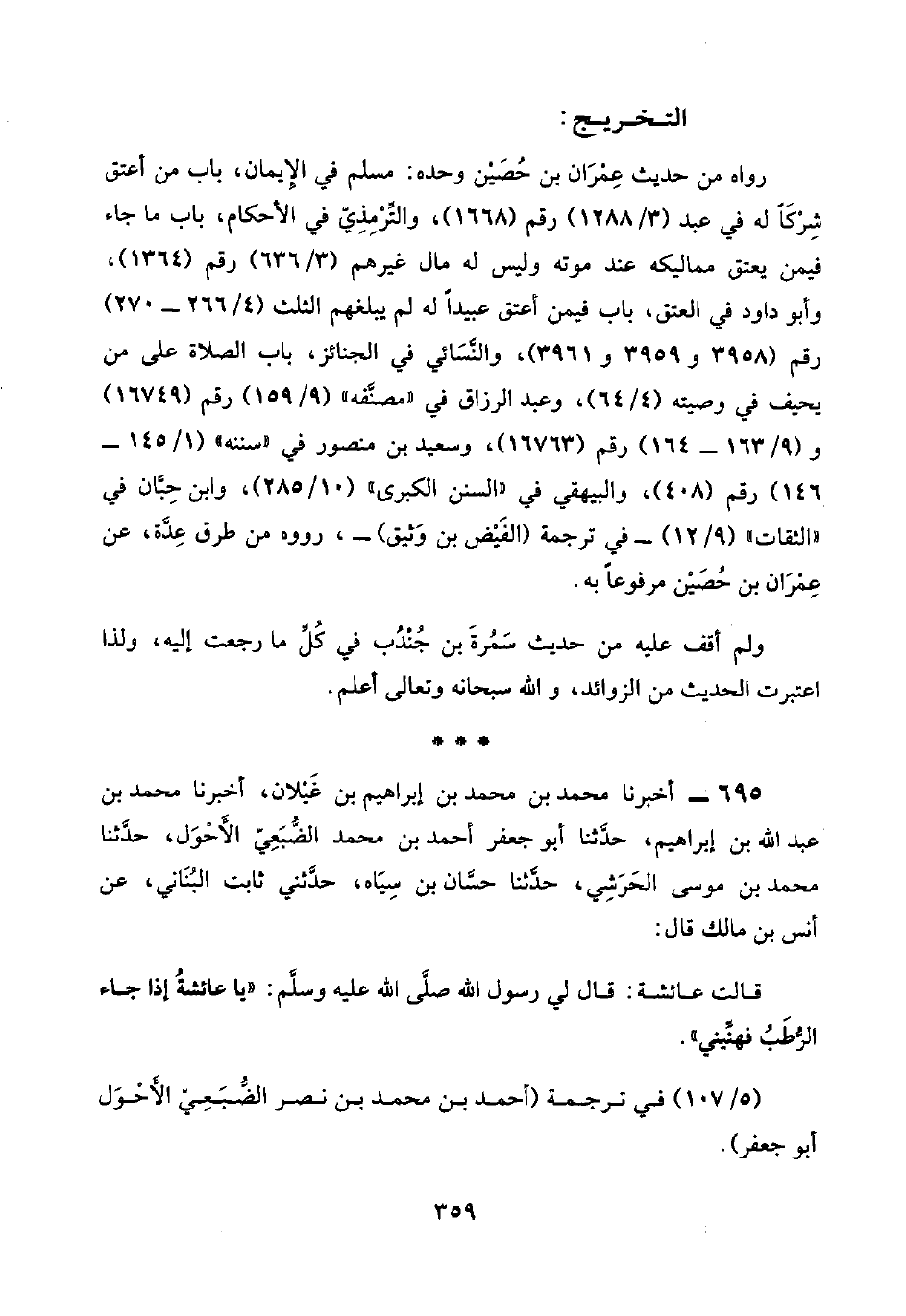 رواه من حديث عِمْران بن حُصَيْن وحده: مسلم في الإيمان، باب من أعتق شِرْكًا له في عبد (٣/ ١٢٨٨) رقم (١٦٦٨)، والتِّرْمِذِيّ في الأحكام، باب ما جاء فيمن يعتق مماليكه عند موته وليس له مال غيرهم (٣/ ٦٣٦) رقم (١٣٦٤)، وأبو داود في العتق، باب فيمن أعتق عُبَيْدًا له لم يبلغهم الثلث (٤/ ٢٦٦ - ٢٧٠) رقم (٣٩٥٨ و ٣٩٥٩ و ٣٩٦١)، والنَّسَائي في الجنائز، باب الصَّلاة على من يحيف في وصيته (٤/ ٦٤)، وعبد الرزاق في "مصنَّفه" (٩/ ١٥٩) رقم (١٦٧٤٩) و (٩/ ١٦٣ - ١٦٤) رقم (١٦٧٣)، وسعيد بن منصور في "سننه" (١/ ١٤٥ - ١٤٦) رقم (٤٠٨)، والبيهقي في "السنن الكبرى" (١٠/ ٢٨٥)، وابن حِبَّان في "الثقات" (٩/ ١٢) -في ترجمة (الفَيْض بن وَثيق) -، رووه من طرف عِدَّة، عن عِمْران بن حُصَيْن مرفوعًا به.