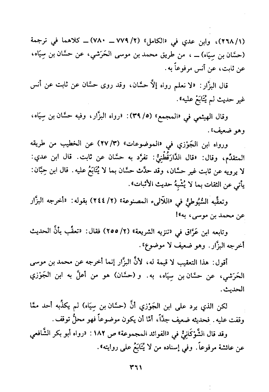 لكن الذي يرد على ابن الجَوْزي أنَّ (حسَّان بن سِيَاه) لم يكذِّبه أحد ممَّا وقفت عليه. فحديثه ضعيف جدًّا، أمَّا أن يكون موضوعًا فهو محلُّ توقف.