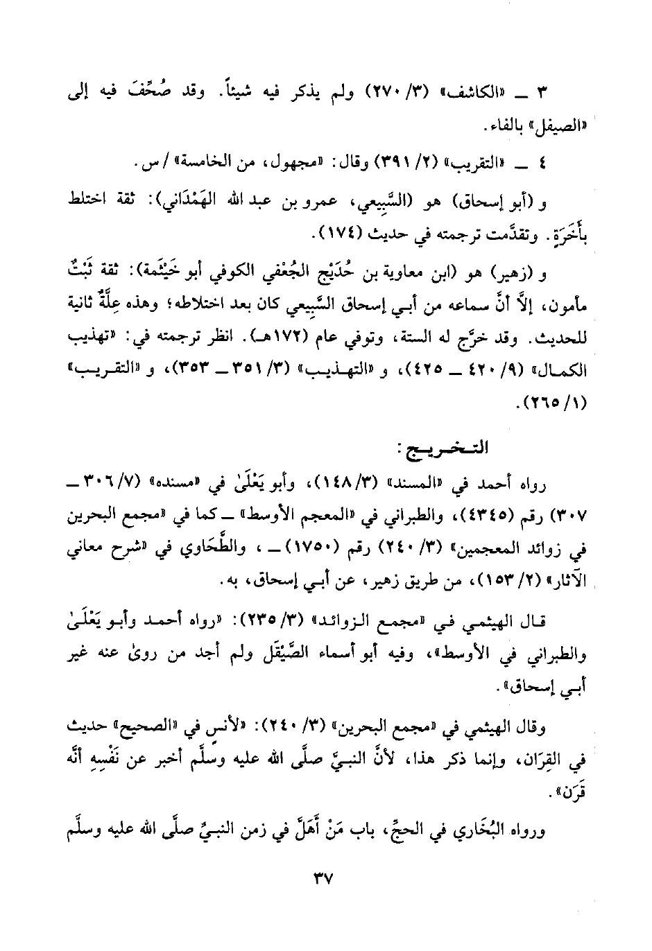 رواه أحمد في "المسند" (٣/ ١٤٨)، وأبو يَعْلَى في "مسنده" (٧/ ٣٠٦ - ٣٠٧) رقم (٤٣٤٥)، والطبراني في "المعجم الأوسط" -كما في "مجمع البحرين في زوائد المعجمين" (٣/ ٢٤٠) رقم (١٧٥٠) -، والطَّحَاوي في "شرح معاني والآثار" (٢/ ١٥٣)، من طريق زهير، عن أبي إسحاق، به.
