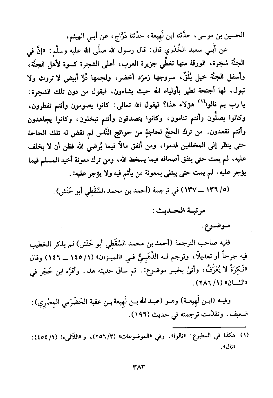 الحسين بن موسى، حدَّثنا ابن لَهِيعة، حدَّثنا دَرَّاج، عن أبي الهيثم،