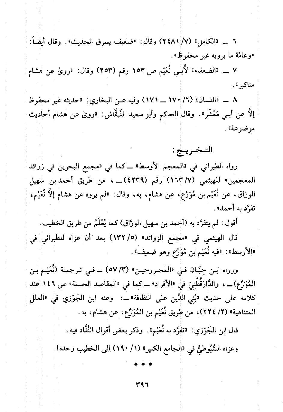 ٧ - "الضعفاء" لأَبي نُعَيْم ص ١٥٣ رقم (٢٥٣) وقال: "روى عن هشام مناكير".