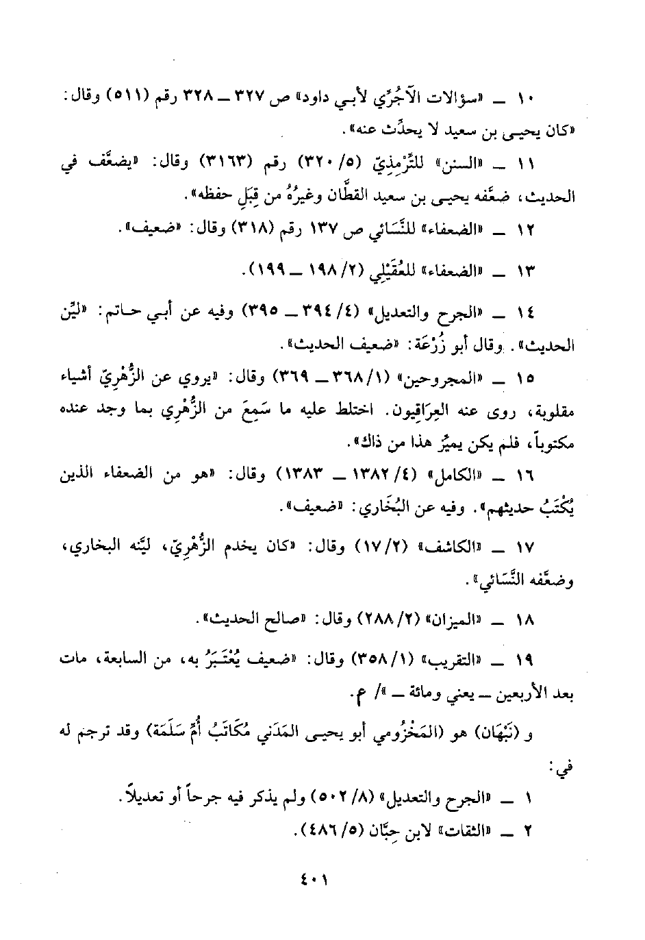 ١٠ - "سؤالات الآجُرِّي لأبي داود" ص ٣٢٧ - ٣٢٨ رقم (٥١١) وقال: "كان يحيى بن سعيد لا يحدِّث عنه".