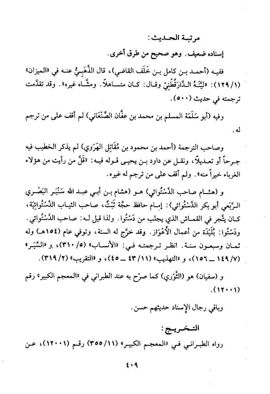 و(هشام صاحب الدَّسْتُوائي) هو (هشام بن أبي عبد اللَّه سَنْبَر البَصْري الرَّبَعي أبو بكر الدَّسْتَوائي): إمام حافظ حجَّة ثَبْتٌ، صاحب الثياب الدَّسْتَوائِيَة، كان يتَّجر في القماش الذي يجلب من دَسْتُوا. ولذا قيل له: صاحب الدَّسْتَوائي. ودَسْتُوا: بُلَيْدَة من أعمال الأَهْواز. وقد خرَّج له الستة، وتوفي عام (١٥٤ هـ) وله ثمان وسبعون سنة. انظر ترجمته في: "الأنساب" (٥/ ٣١٠)، و"السِّيَر" (٧/ ١٤٩ - ١٥٦)، و"التهذيب" (١١/ ٤٣ - ٤٥)، و"التقريب" (٢/ ٣١٩).