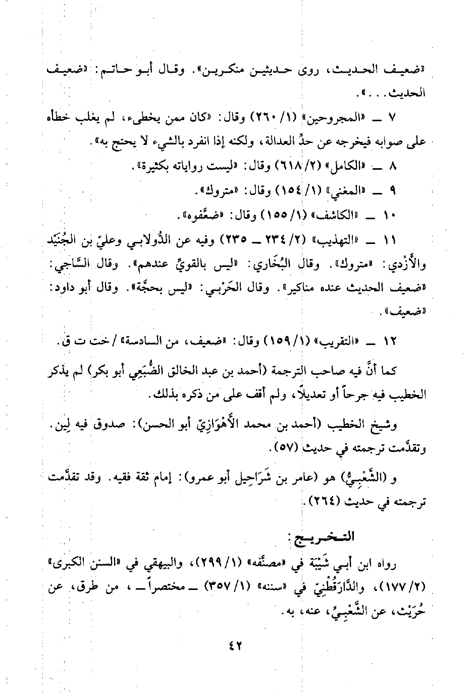 ٩ - "المغني" (١/ ١٥٤) وقال: "متروك".