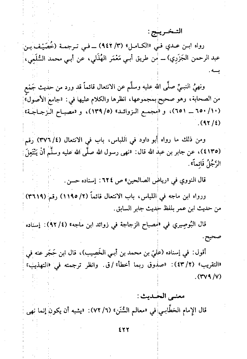 ومن ذلك ما رواه أبو داود في اللباس، باب في الانتعال (٤/ ٣٧٦) رقم (٤١٣٥)، عن جابر بن عبد اللَّه قال: "نهى رسول اللَّه صلي اللَّه عليه وسلَّم أنْ يَنْتَعِلَ "الرَّجُلُ قَائِمًا".