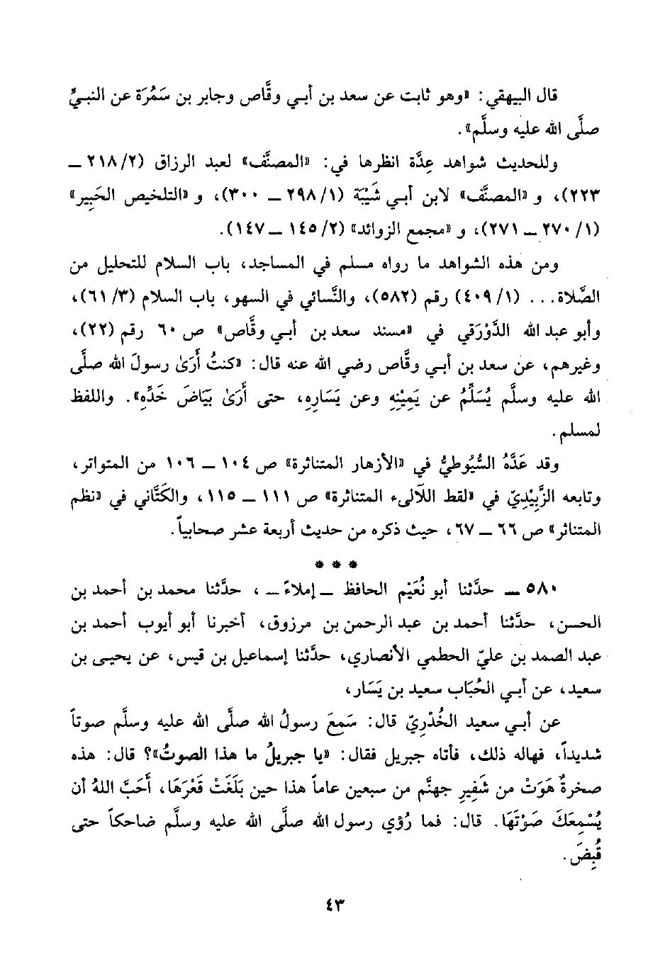 قال البيهقي: "وهو ثابت عن سعد بن أبي وقَّاص وجابر بن سَمُرَة عن النبيِّ صلَّى اللَّه عليه وسلَّم".