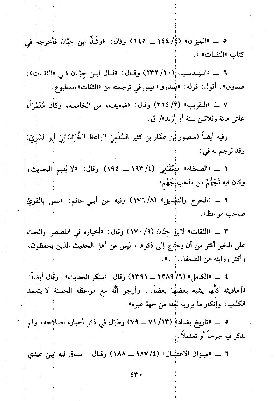 وفيه أيضًا (منصور بن عمَّار بن كثير السُّلَمِيّ الواعظ الخُرَاسَانِيّ أبو السَّرِيّ) وقد ترجم له في