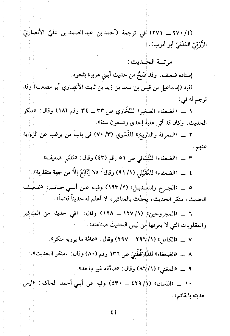 ٨ - "الضعفاء" للدَّارَقُطْنِيّ ص ١٣٦ رقم (٨٠) وقال: "منكر الحديث".