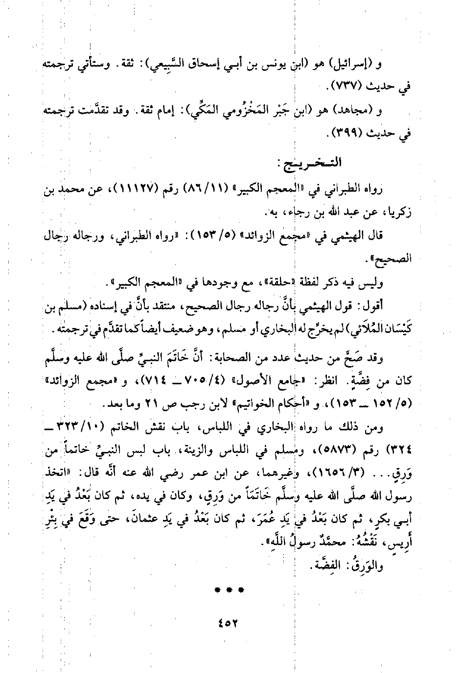 وليس فيه ذكر لفظة "حلقة"، مع وجودها في "المعجم الكبير".