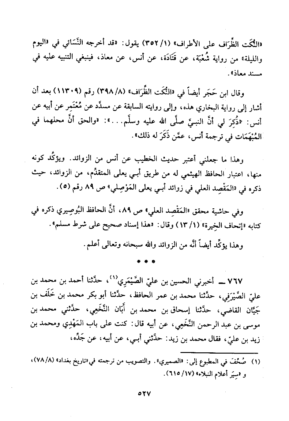 وهذا ما جعلني أعتبر حديث الخطيب عن أنس من الزوائد. ويؤكِّد كونه منها، اعتبار الحافظ الهيثمي له من طريق أبي يَعْلَى المتقدِّم، من الزوائد، حيث ذكره في "المَقْصِد العلي في زوائد أبي يَعْلَى المَوْصِلِي" ص ٨٩ رقم (٥).