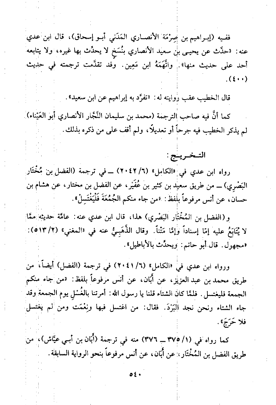 ورواه ابن عدي في "الكامل" (٦/ ٢٠٤١) في ترجمة (الفضل) أيضًا، من طريق محمد بن عبد العزيز، عن أَبَان، عن أنس مرفوعًا بلفظ: "من جاء منكم الجمعة فليغتسل. فلمَّا كان الشتاء قلنا يا رسول اللَّه: أمرتنا بالغُسْلِ يوم الجمعة وقد جاء الشتاء ونحن نجد البَرْدَ. فقال: من اغتسل فيها ونِعْمَت ومن لم يغتسل فلا حَرَجَ".
