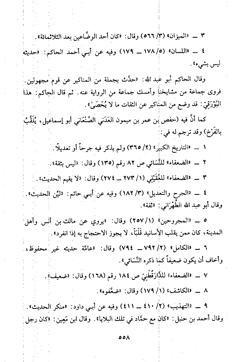 ٧ - "الضعفاء" للدَّارَقُطْنِيّ ص ١٨٤ رقم (١٦٨) وقال: "ضعيف".