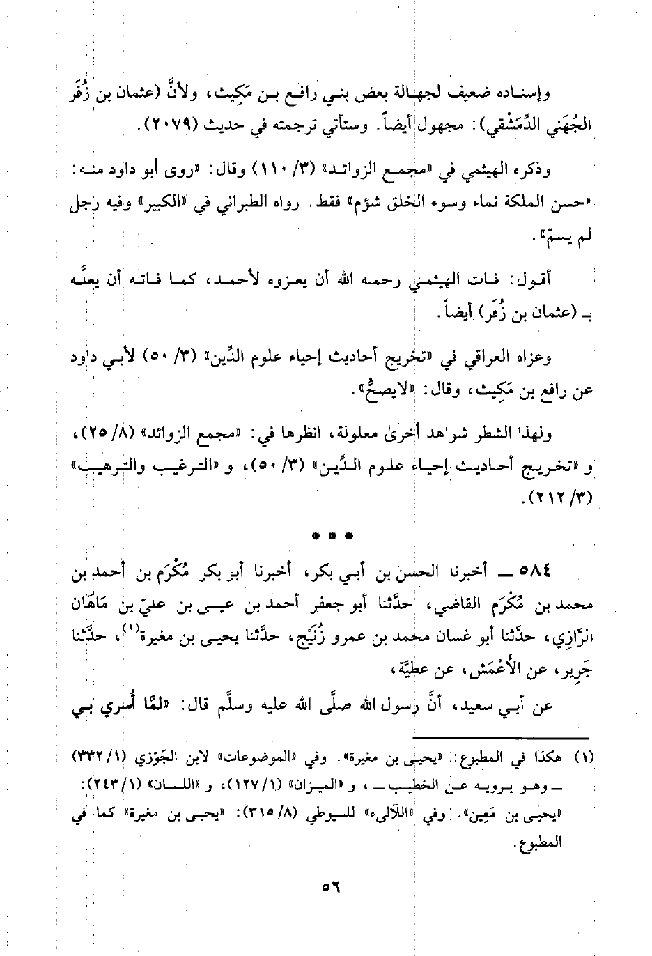٥٨٤ - أخبرنا الحسن بن أبي بكر، أخبرنا أبو بكر مُكْرَم بن أحمد بن محمد بن مُكْرَم القاضي، حدَّثنا أبو جعفر أحمد بن عيسى بن عليّ بن مَاهَان الرَّازي، حدَّثنا أبو غسان محمد بن عمرو زُنَيْج، حدَّثنا يحيى بن مغيرة (¬١)، حدَّثنا جَرِير، عن الأَعْمَش، عن عطيَّة،