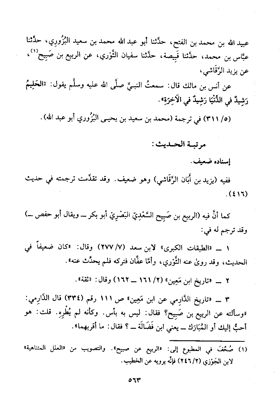 كما أنَّ فيه (الربيع بن صَبِيح السَّعْدِيّ البَصْري أبو بكر -ويقال أبو حفص-) وقد ترجم له في: