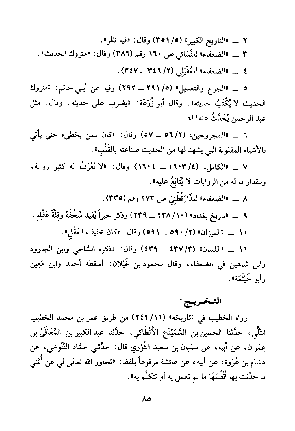 ٢ - "التاريخ الكبير" (٥/ ٣٥١) وقال: "فيه نظر".
