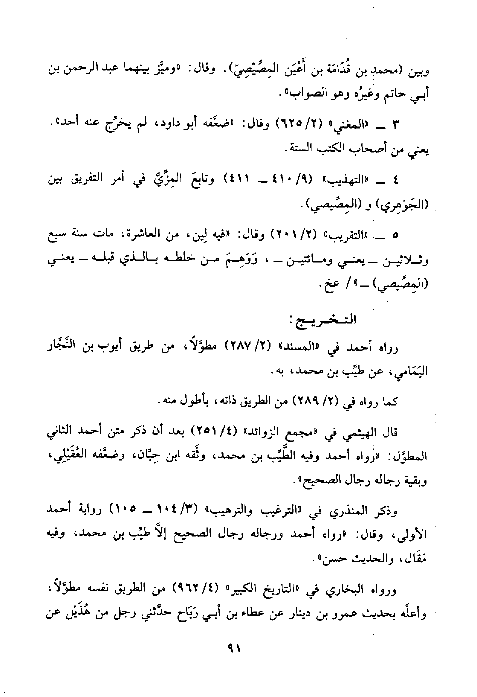 ٣ - "المغني" (٢/ ٦٢٥) وقال: "ضعَّفه أبو داود، لم يخرِّج عنه أحد". يعني من أصحاب الكتب الستة.