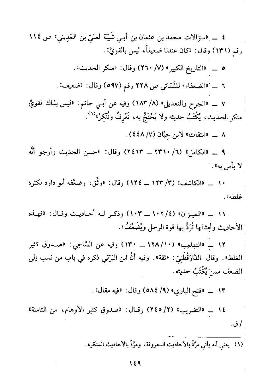 ٦ - "الضعفاء" للنَّسَائي ص ٢٢٨ رقم (٥٩٧) وقال: "ضعيف".