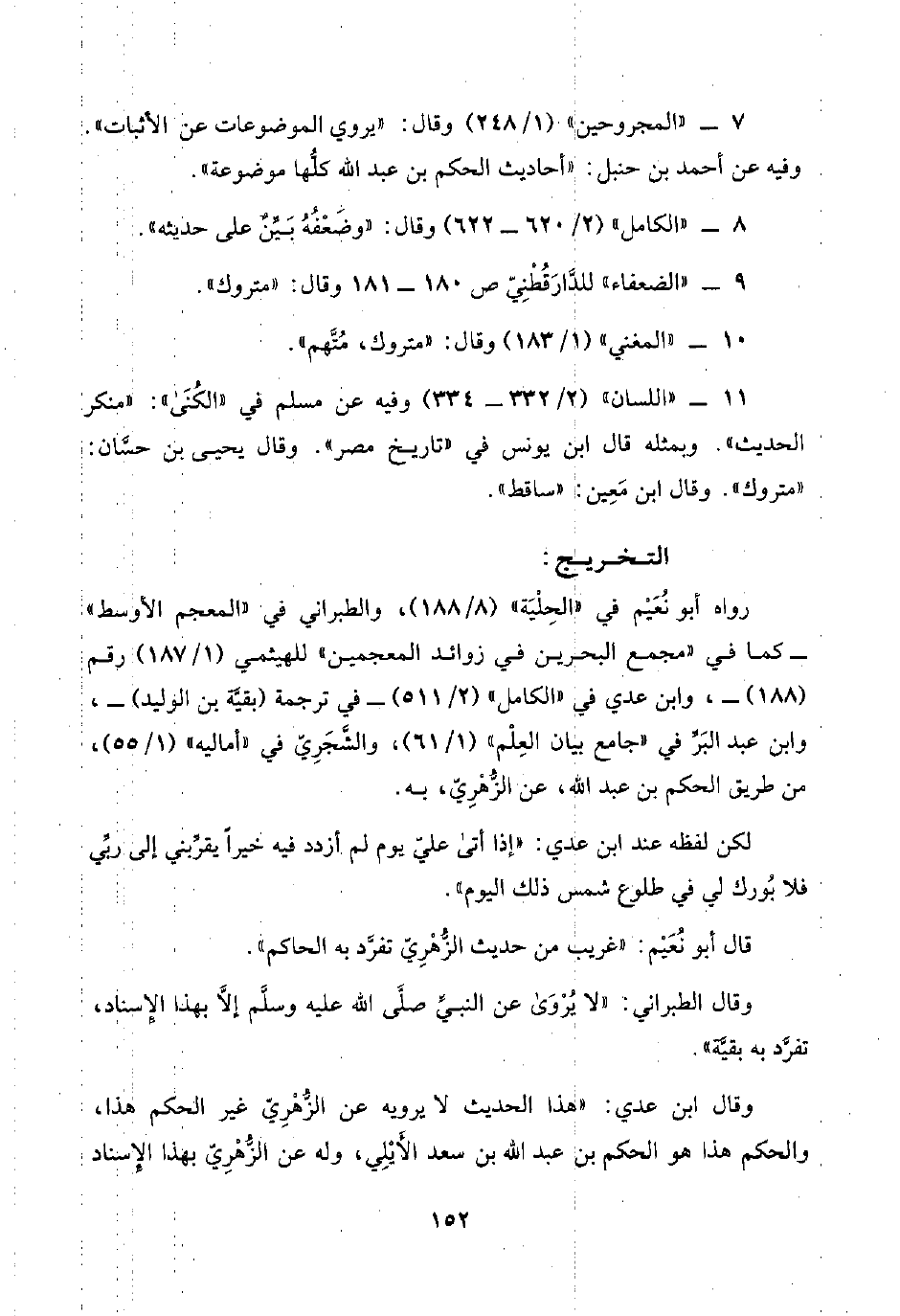 رواه أبو نُعَيْم في "الحِلْيَة" (٨/ ١٨٨)، والطبراني في "المعجم الأوسط" -كما في "مجمع البحرين في زوائد المعجمين" للهيثمي (١/ ١٨٧) رقم (١٨٨) -، وابن عدي في "الكامل" (٢/ ٥١١) -في ترجمة (بقيَّة بن الوليد) -، وابن عبد البَرِّ في "جامع بيان العِلْم" (١/ ٦١)، والشَّجَرِيّ في "أماليه" (١/ ٥٥)، من طريق الحكم بن عبد اللَّه، عن الزُّهْرِيّ، به.