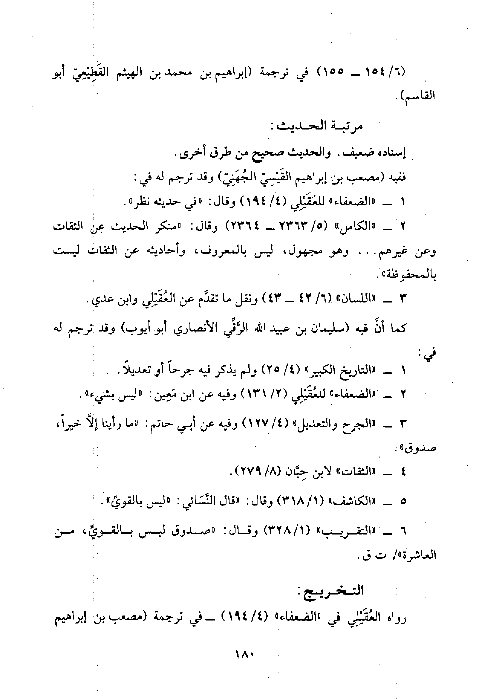 ١ - "الضعفاء" للعُقَيْلِي (٤/ ١٩٤) وقال: "في حديثه نظر".