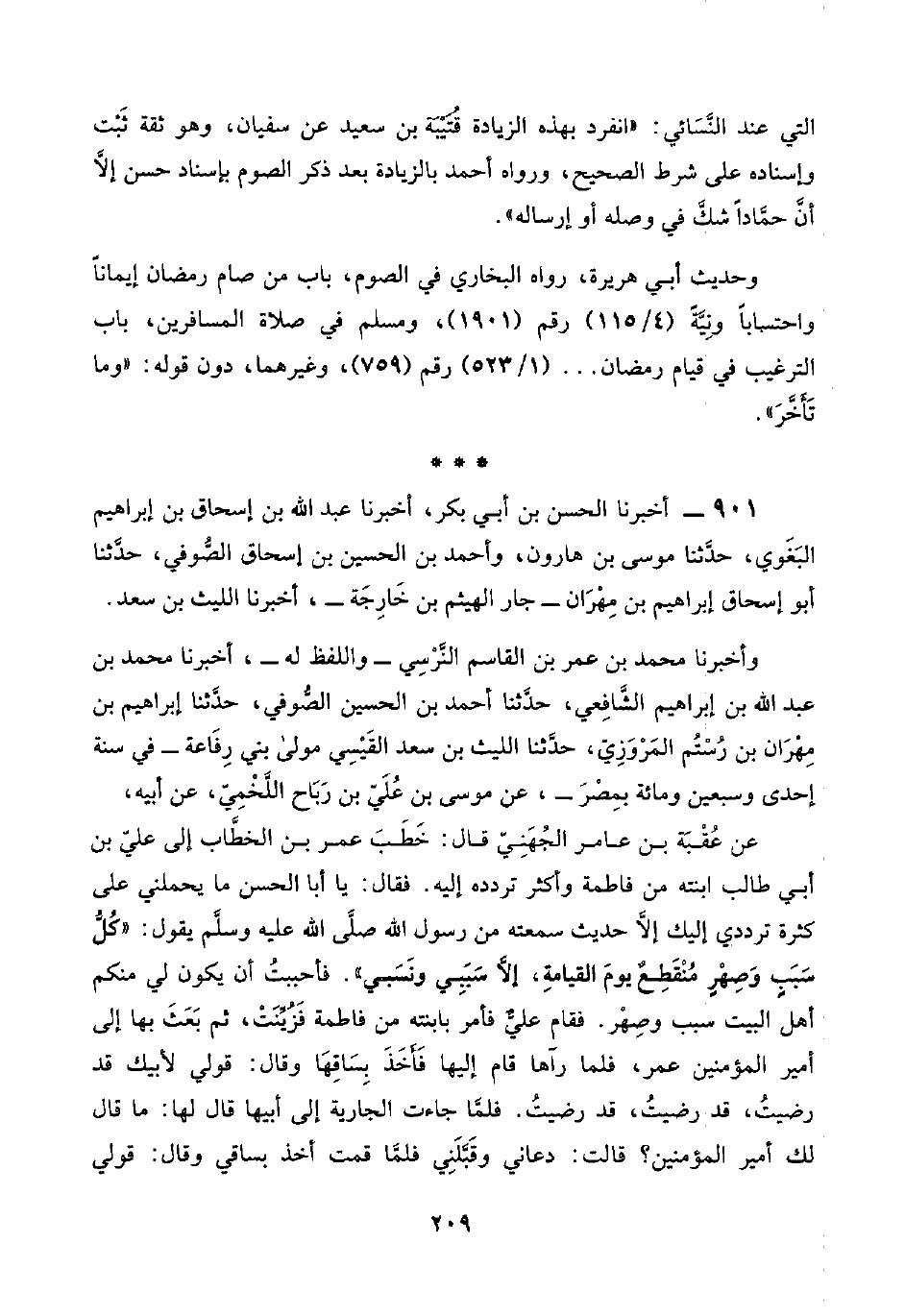٩٠١ - أخبرنا الحسن بن أبي بكر، أخبرنا عبد اللَّه بن إسحاق بن إبراهيم البَغَوي، حدَّثنا موسى بن هارون، وأحمد بن الحسين بن إسحاق الصُّوفي، حدَّثنا أبو إسحاق إبراهيم بن مِهْرَان -جار الهيثم بن خَارِجَة-، أخبرنا الليث بن سعد.