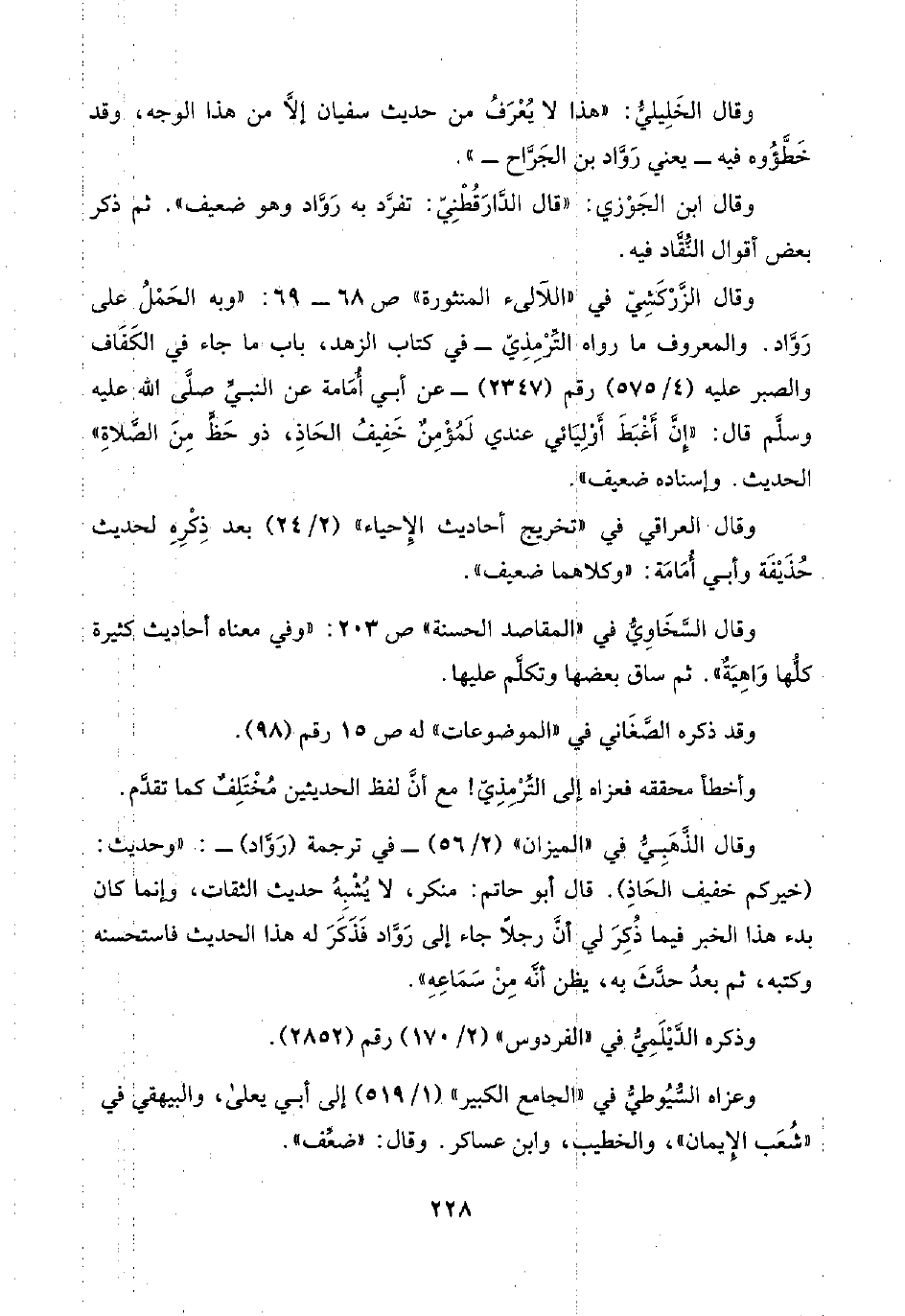وقال ابن الجَوْزي: "قال الدَّارَقُطْنِيّ: تفرَّد به رَوَّاد وهو ضعيف". ثم ذكر بعض أقوال النُّقَّاد فيه.