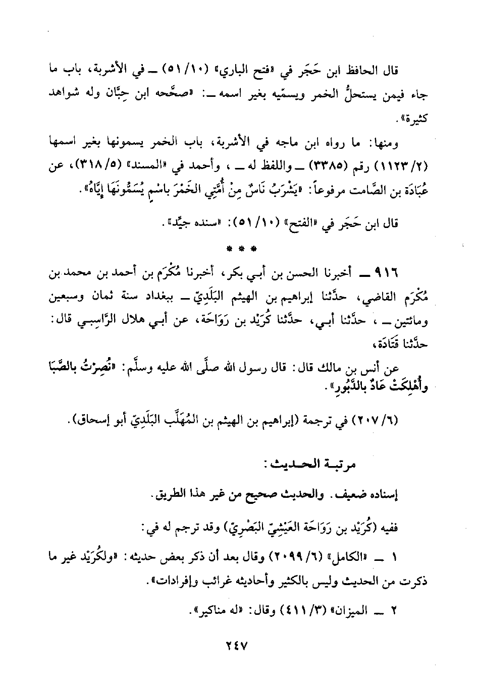 ٩١٦ - أخبرنا الحسن بن أبي بكر، أخبرنا مُكْرَم بن أحمد بن محمد بن مُكْرَم القاضي، حدَّثنا إبراهيم بن الهيثم البَلَديّ -ببغداد سنة ثمان وسبعين ومائتين-، حدَّثنا أبي، حدَّثنا كُرَيْد بن رَوَاحَة، عن أبي هلال الرَّاسِبي قال: حدَّثنا قَتَادَة،