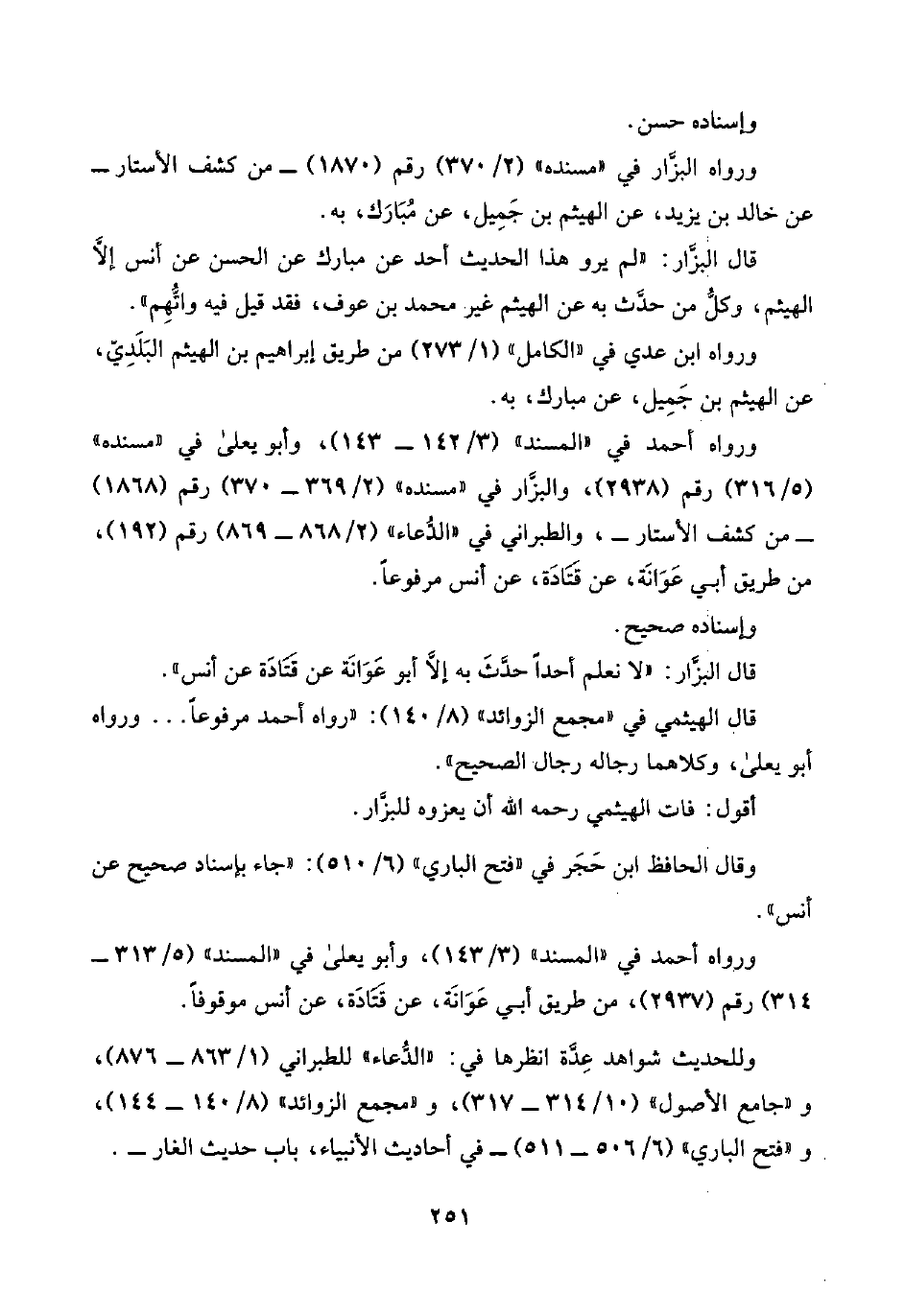 قال البزَّار: "لم يرو هذا الحديث أحد عن مبارك عن الحسن عن أنس إلَّا الهيثم، وكلُّ من حدَّث به عن الهيثم غير محمد بن عوف، فقد قيل فيه واتُّهِم".
