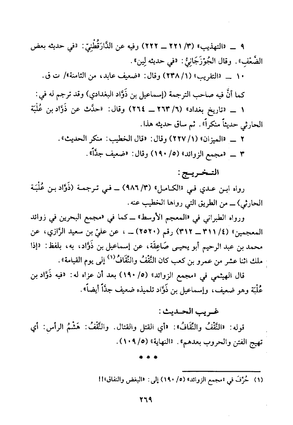 ١ - "تاريخ بغداد" (٦/ ٢٦٣ - ٢٦٤) وقال: "حدَّث عن ذَوَّاد بن عُلْبَة الحارثي حديثًا منكرًا". ثم ساق حديثه هذا.
