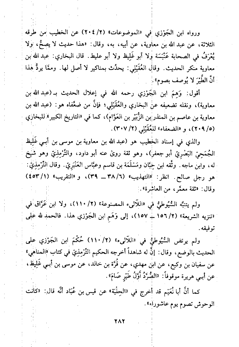 ولم يتنبَّه السُّيُوطيُّ في "اللآلئ المصنوعة" (٢/ ١١٠)، ولا ابن عَرَّاق في "تنزيه الشريعة" (٢/ ١٥٦ - ١٥٧)، إلى وَهِمَ ابن الجَوْزي هذا. فالحمد للَّه على توفيقه.