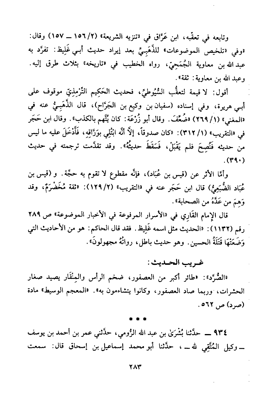 ٩٣٤ - حدَّثنا بُشْرَى بن عبد اللَّه الرُّومي، حدَّثني عمر بن أحمد بن يوسف -وكيل المُتَّقِي للَّه-، حدَّثنا أبو محمد إسماعيل بن إسحاق قال: سمعت
