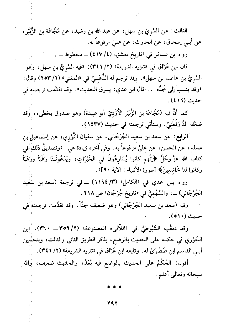 الثالث: عن السَّرِيّ بن سهل، عن عبد اللَّه بن رشيد، عن مُجَّاعَة بن الزُّبَيْر، عن أبي إسحاق، عن الحارث، عن عليّ مرفوعًا به.